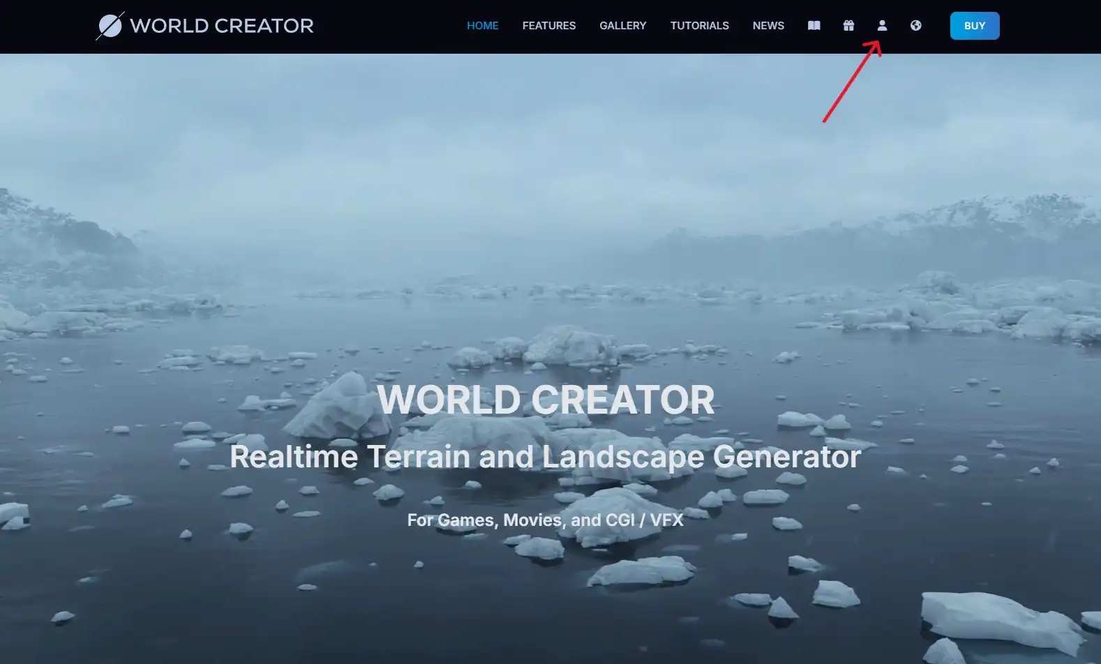 在下载并登录World Creator之前,您需要先登录客户门户,点击官网首页菜单栏的人像图标。