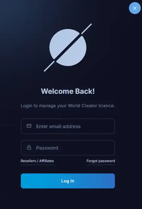 启动World Creator后,软件会提示您输入登录信息,仅首次登录软件需要手动输入以上信息。