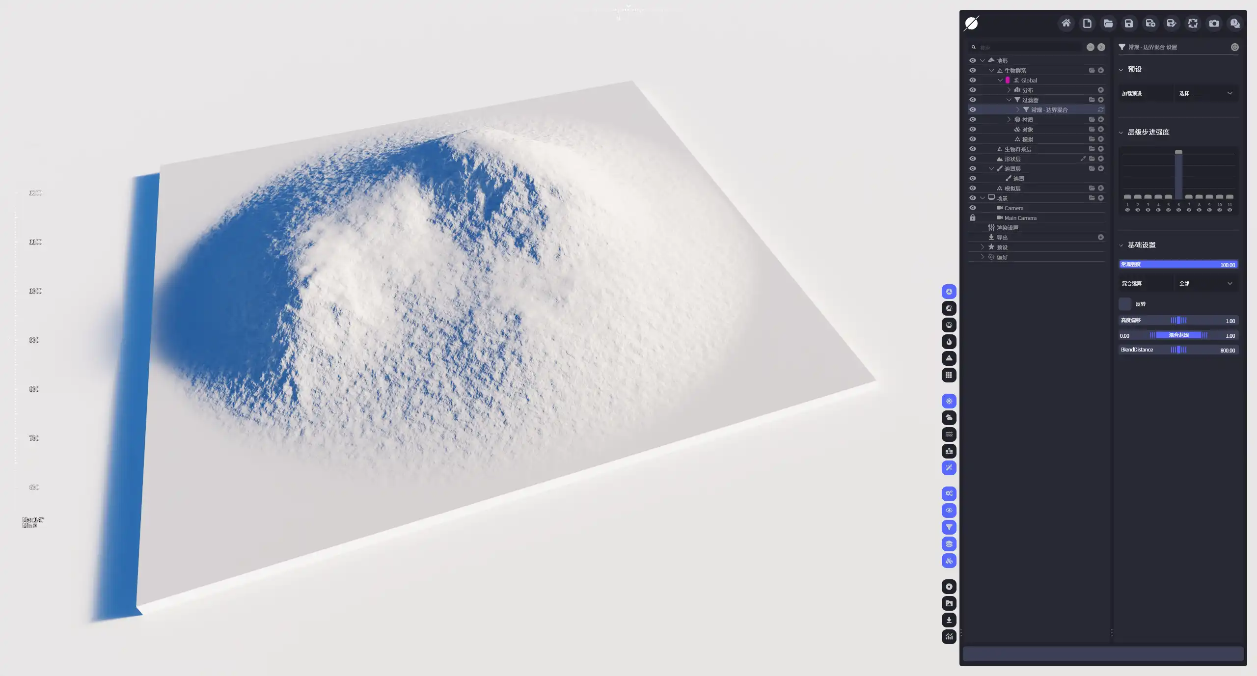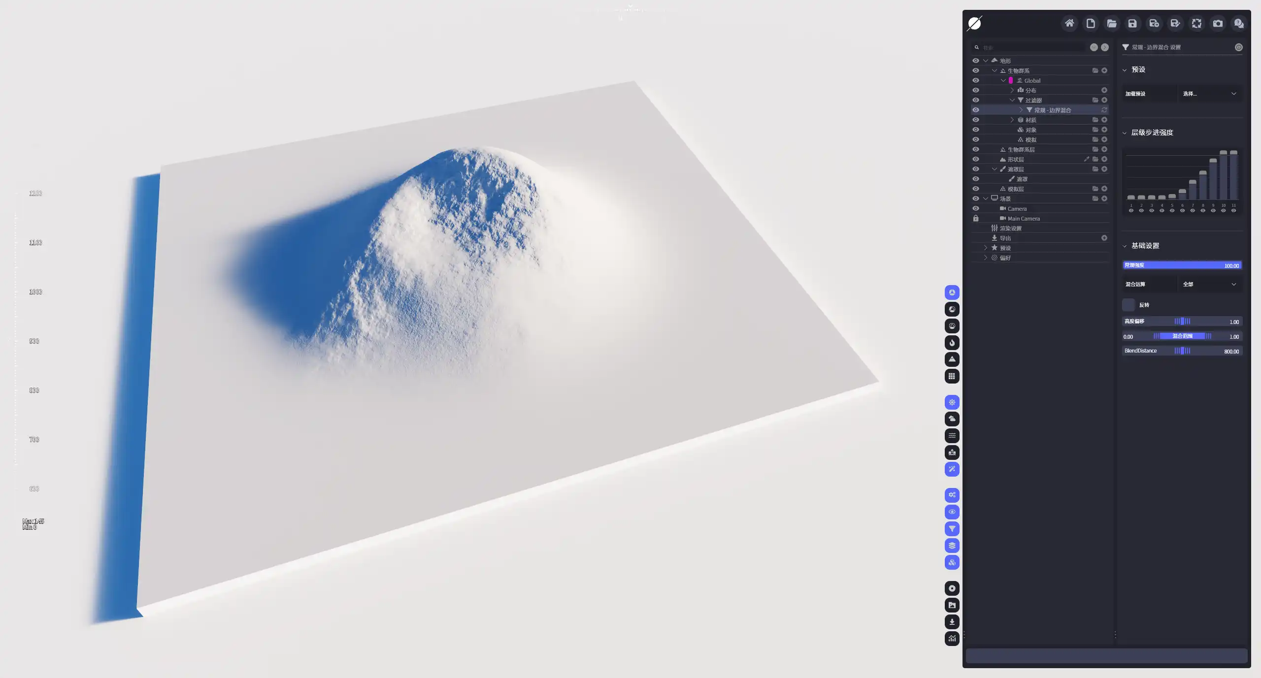 | 高度偏移 | 地形边界的绝对高度,可调范围在-1000到1000之间。 |