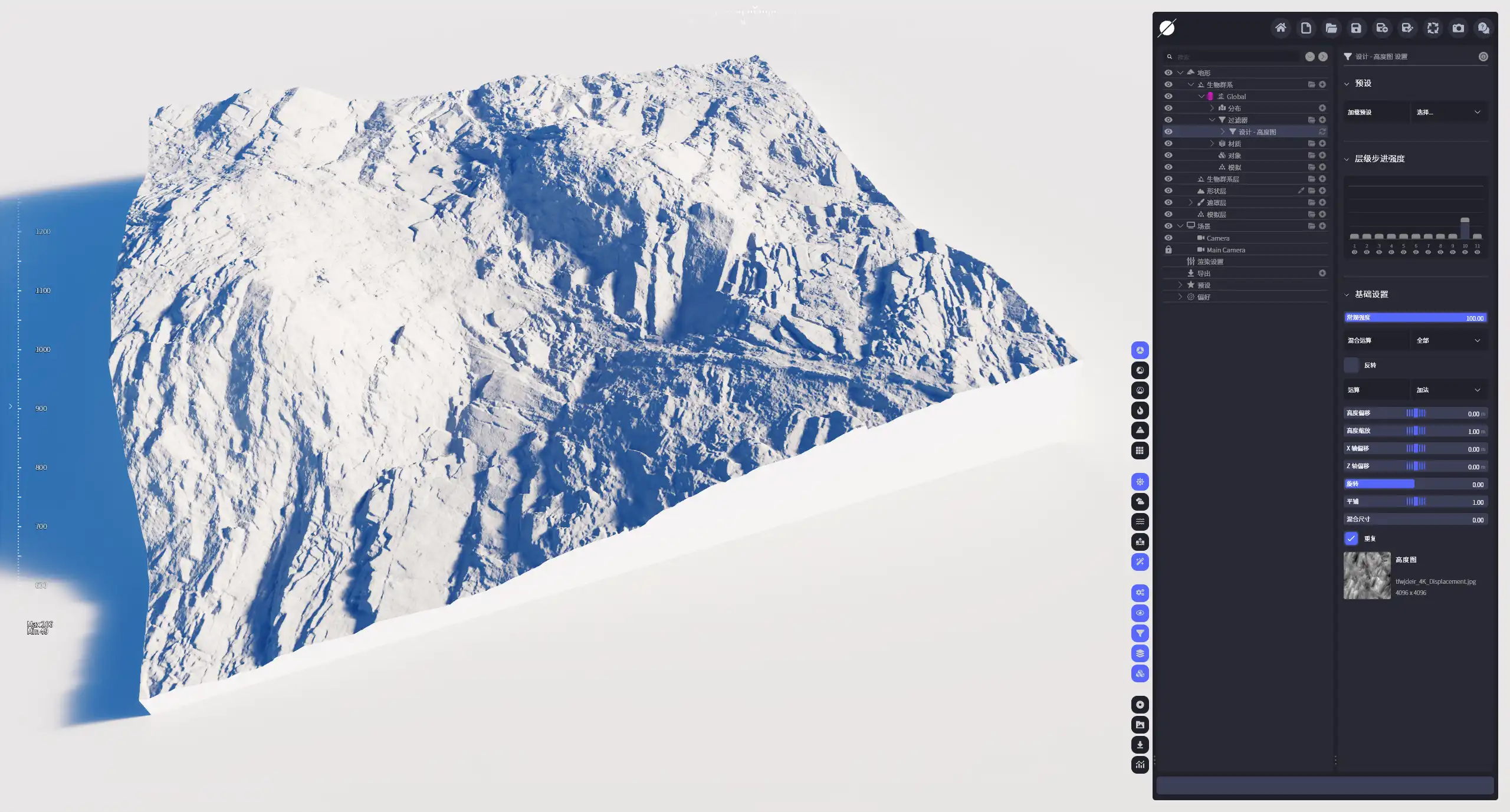 | 高度缩放 | 高度图的垂直缩放值,类似于位移图的位移强度。 |