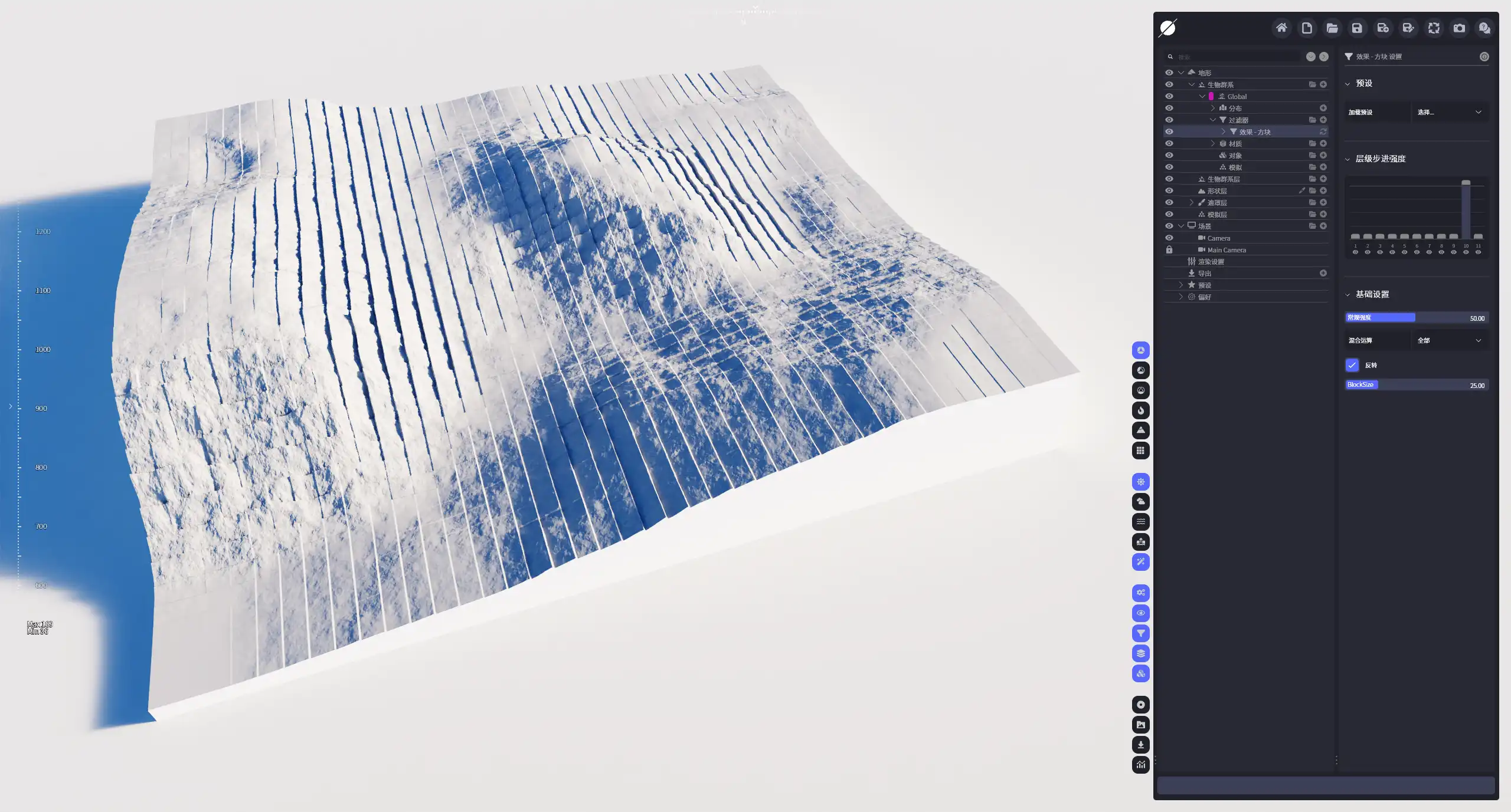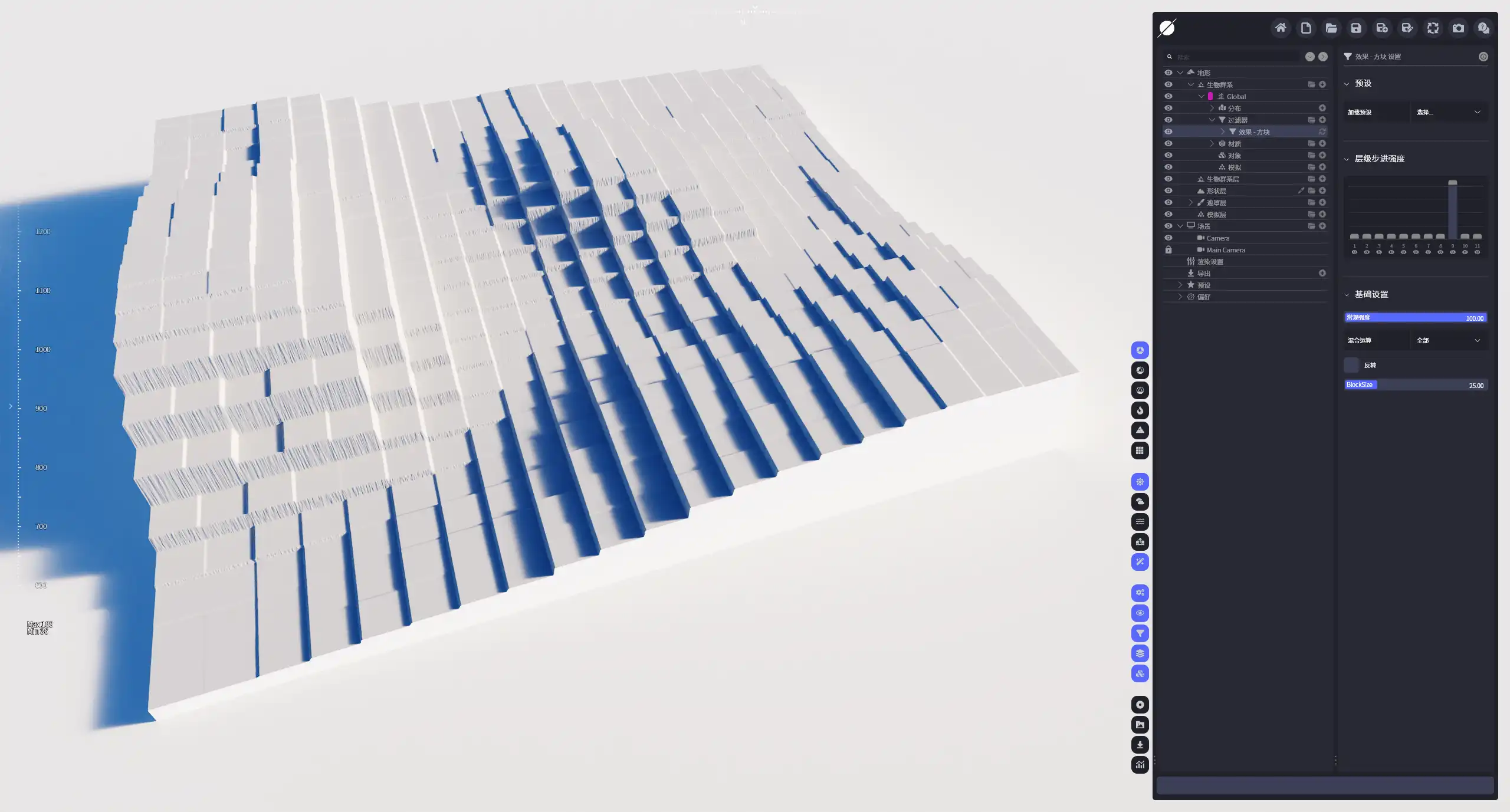 功能很单纯,将地形转化为方块。当我们把层级步进强度设置在不同层级的时候,过滤器会生成不同大小的方块,并且这些不同层级下的方块是可以叠加组合的。
