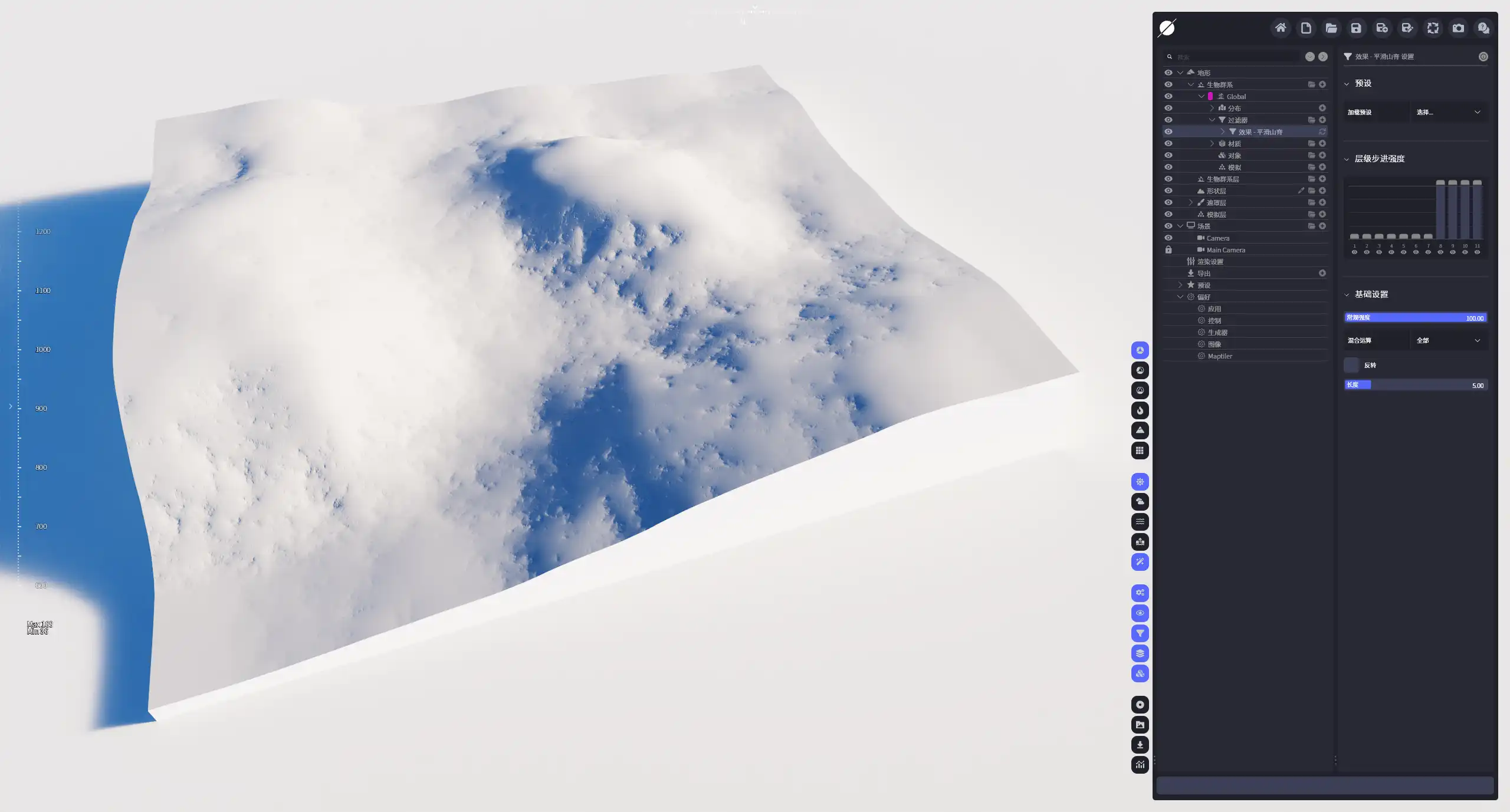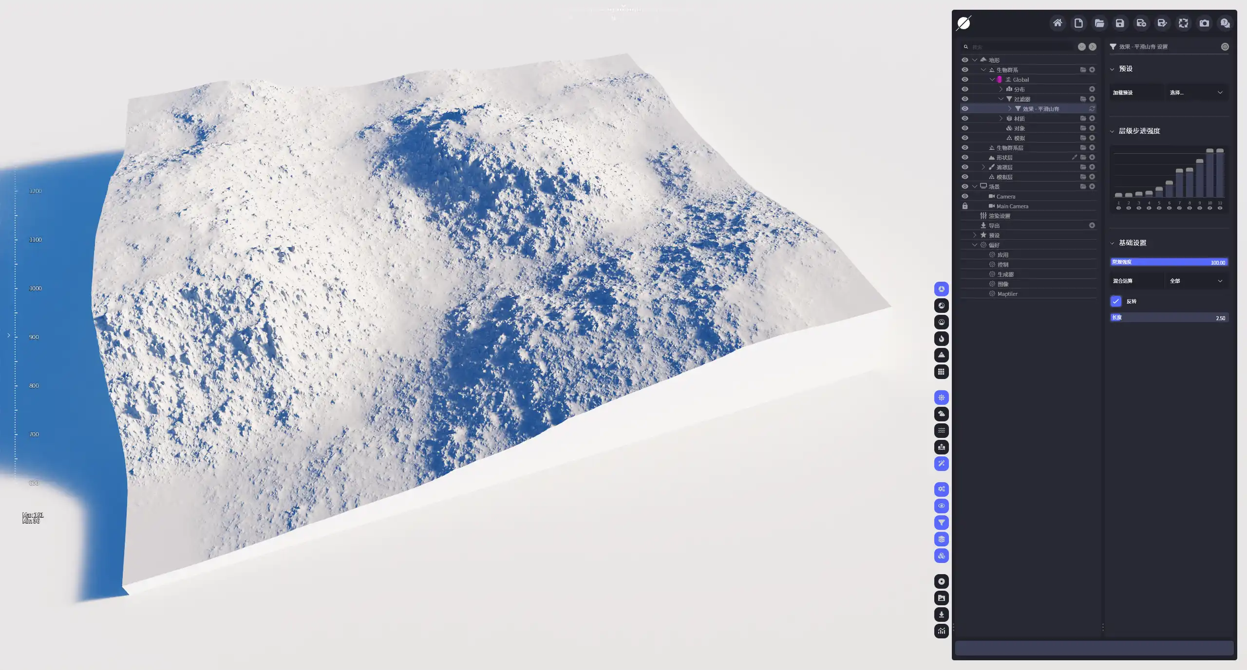 作用效果很简单,让地形的山脊或隆起结构变得平滑,可用于调整山脊的平滑度。