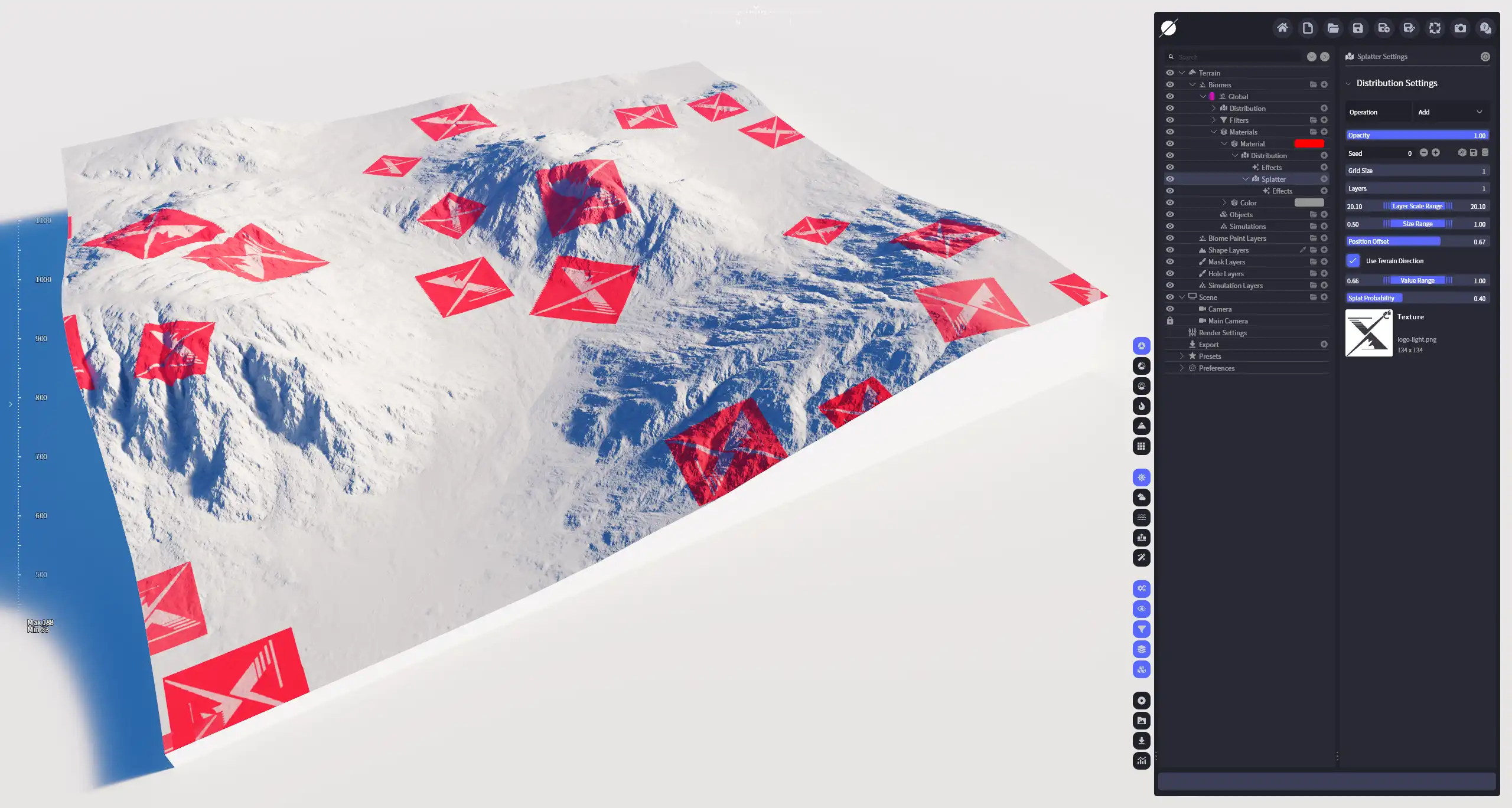 | 溅落概率 | 随机移除部分溅落单元,可以调节溅落分布的整体密度。 |