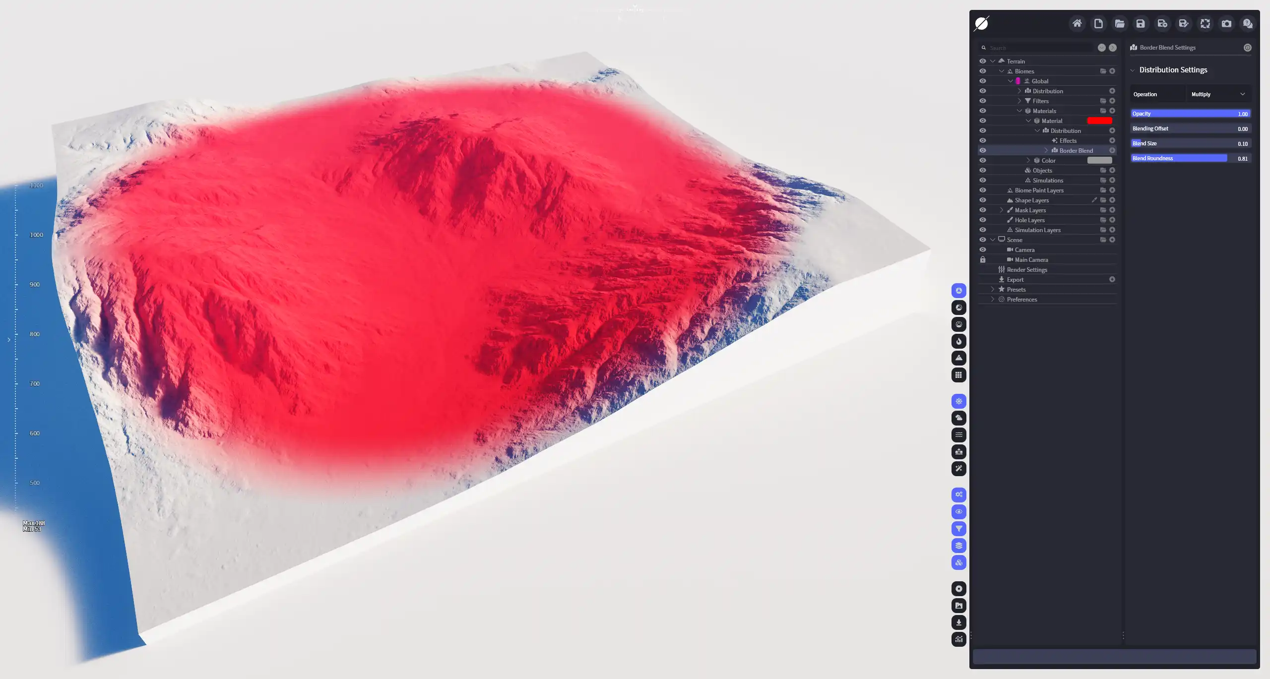 生成去除地形边界区域的选区,所选中心区域和边界区域可以平滑过渡。