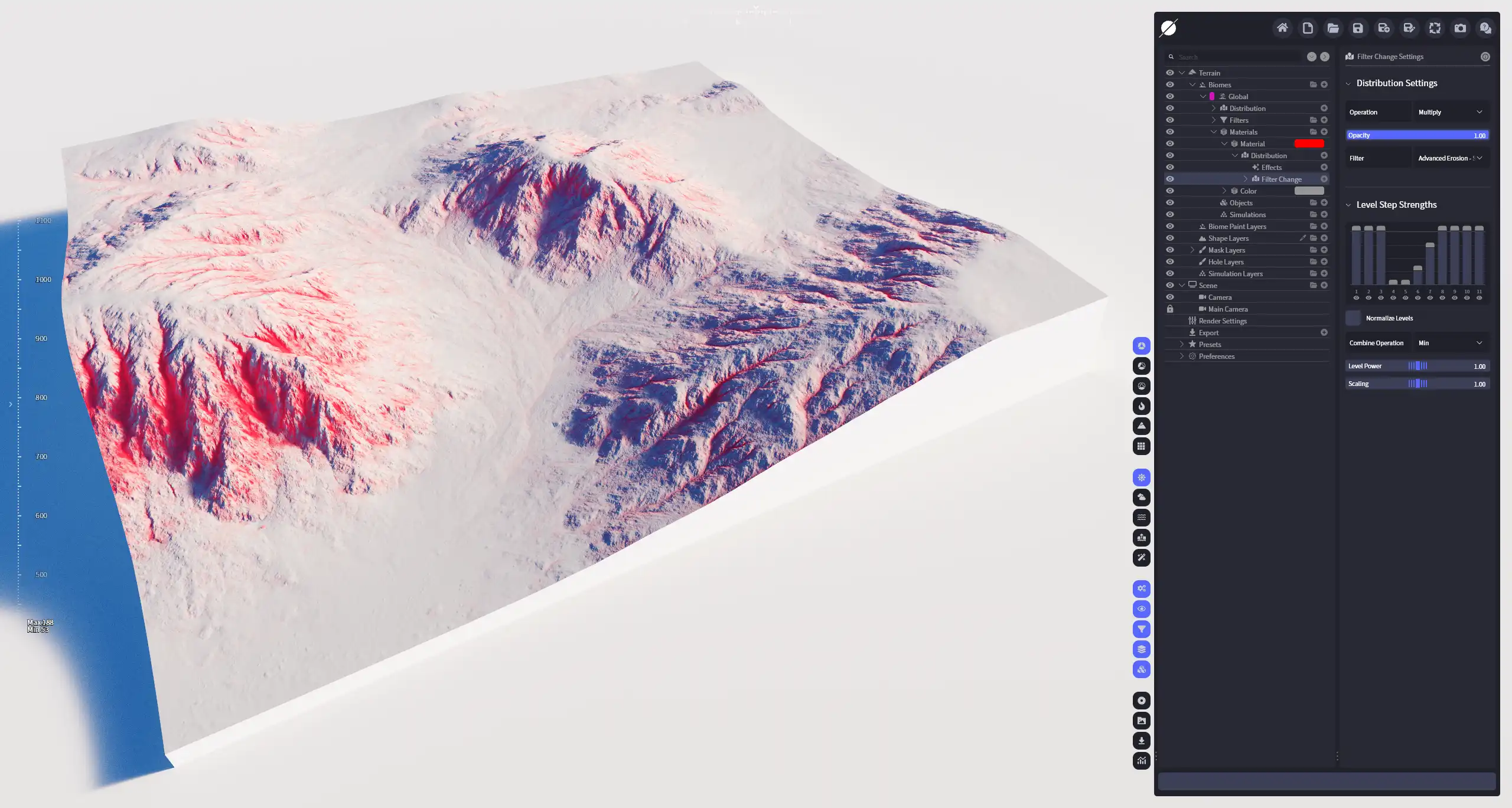 | 层级步进强度 | 可以精确捕捉不同层级上过滤器对地形的改变区域。 |