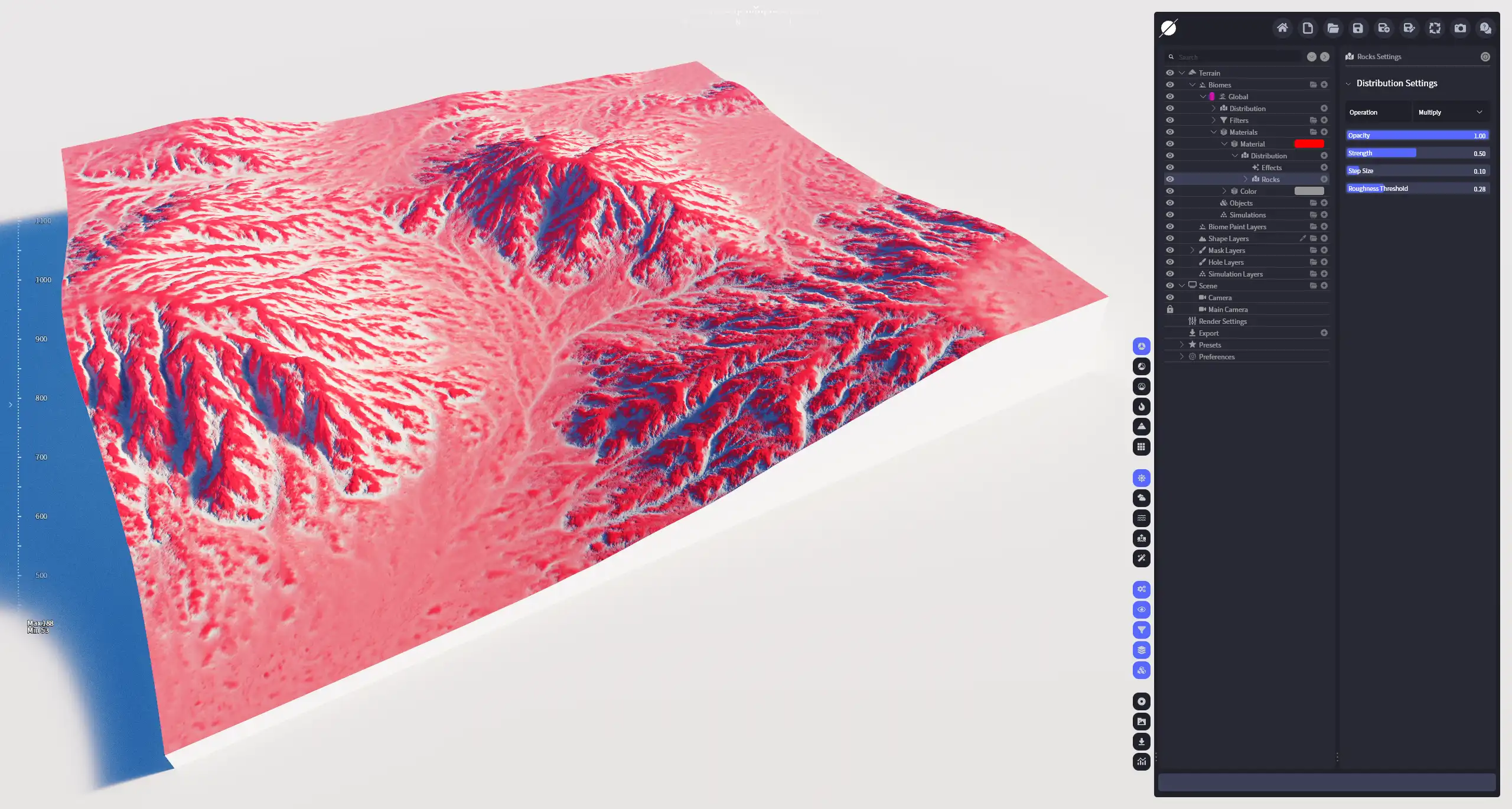 选择地形中类似岩石的凸出区域。内部算法逻辑由